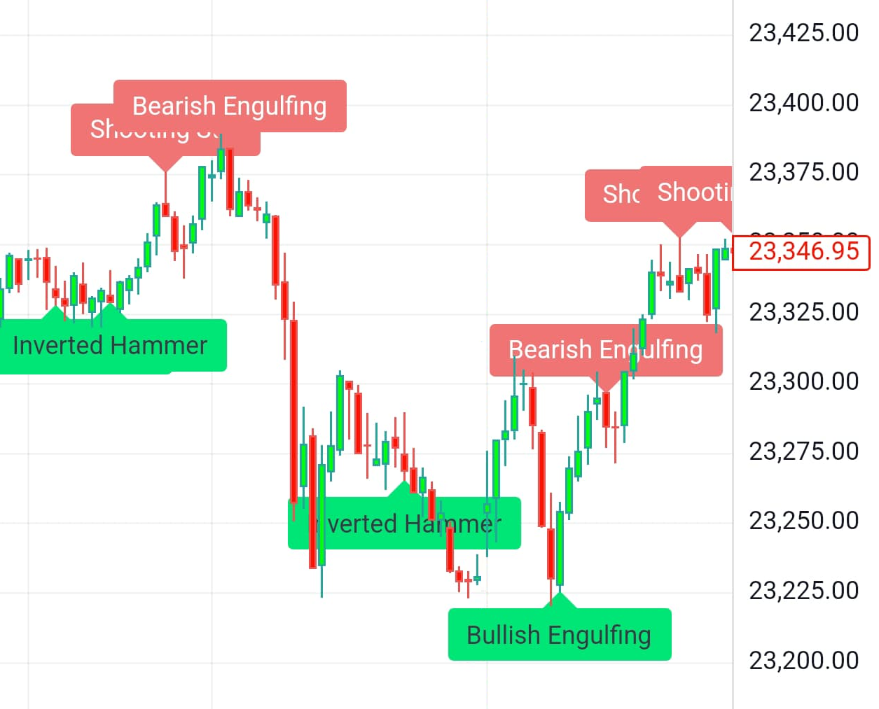 This Tool Will Find Candlestick Pattern Automatically & Detect All The Important Candlestick Patterns From The Chart & Will Show You & Also Through Color Difference It Will Tell You That Its A Bullish Pattern Or Bearish Pattern Green Means Bullish Pattern Red Means Bearish