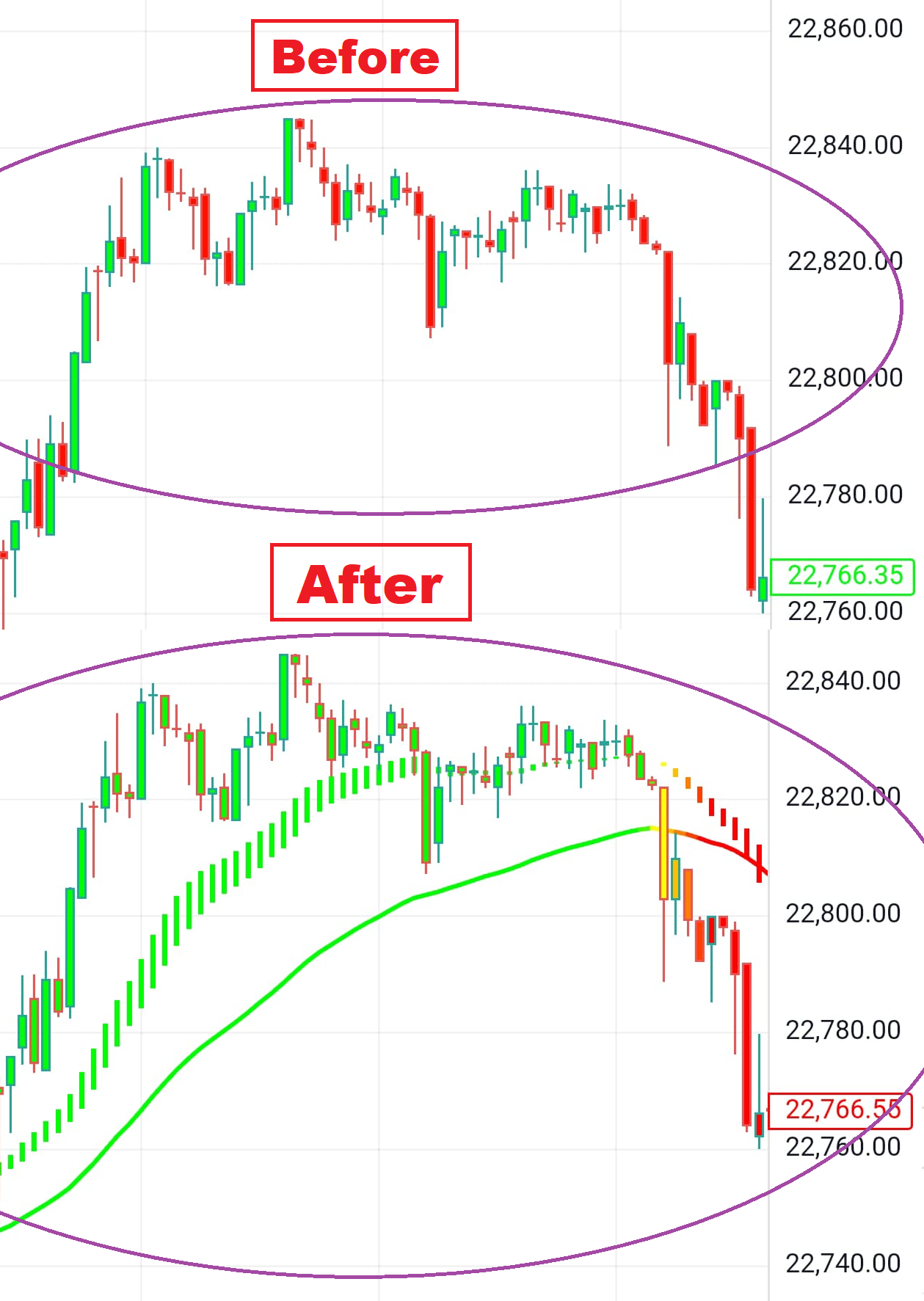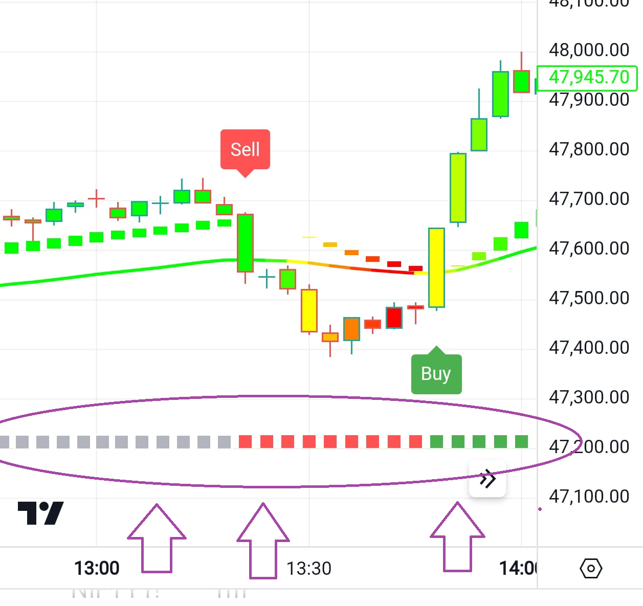 Trend Candles Will Help You to Remove the Noise From The Candles & Understand The Market Trend Properly From Red Green To Candle Will Start Showing Only Green Or Only Red Only Green Means Buy Trend Only Red Means Sell Trend