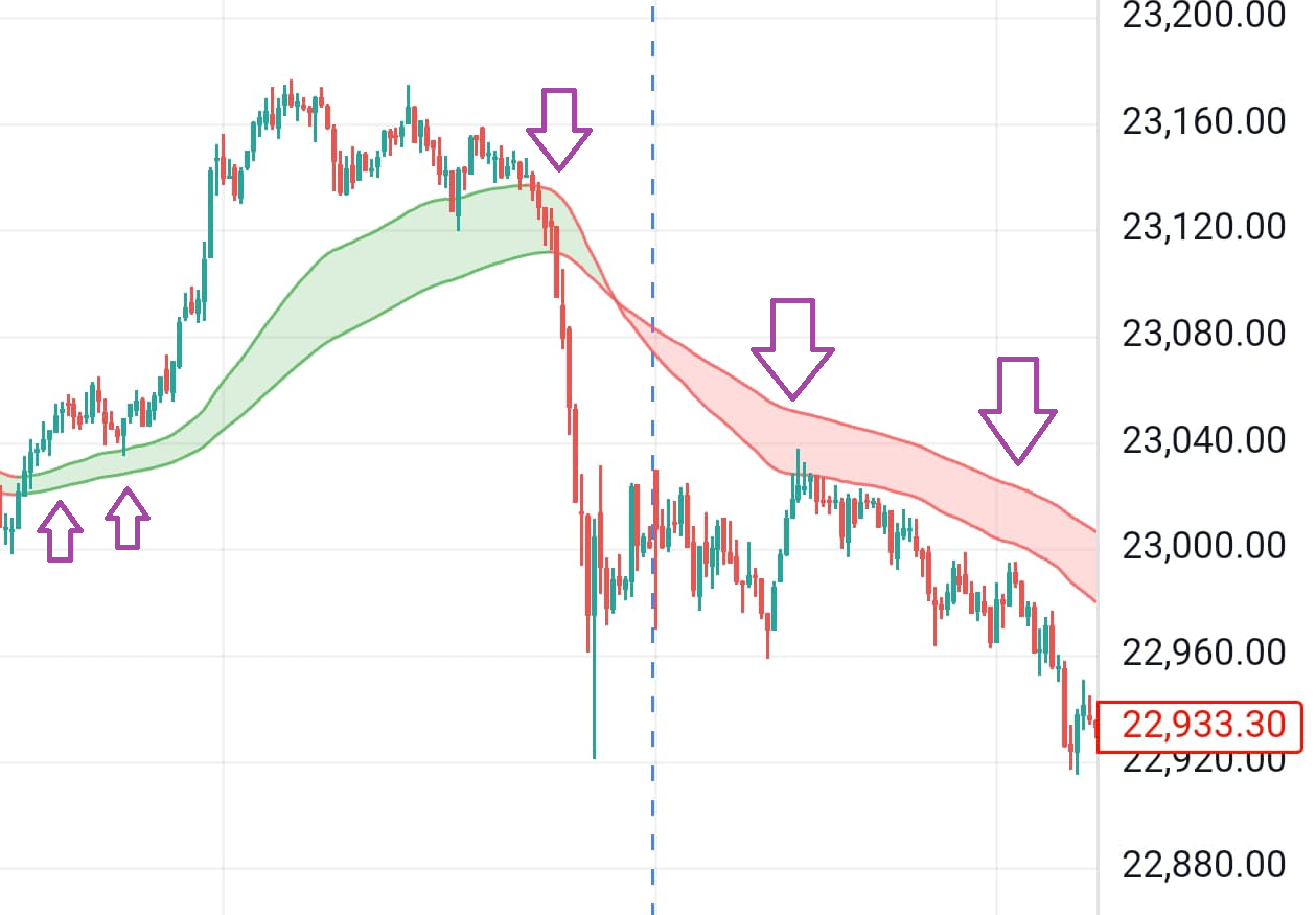 This Tool We Have A Ribbon That Also Will Help Us To Know The Trend of the Market & Know The Retest Zone If Market Above This Then Up Trend Bellow Means Down Trend & All When Market After Cross Come Back To This Level Market Retest From There & Continue The Trend Again